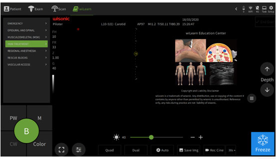 wiGUide available Bandwidth: 4-15MHz FOV (Max): 38mm Steer: +/-30°, 1°/increment Biopsy Guide: JSM-040, 37°, 46°, 58° reusable |
